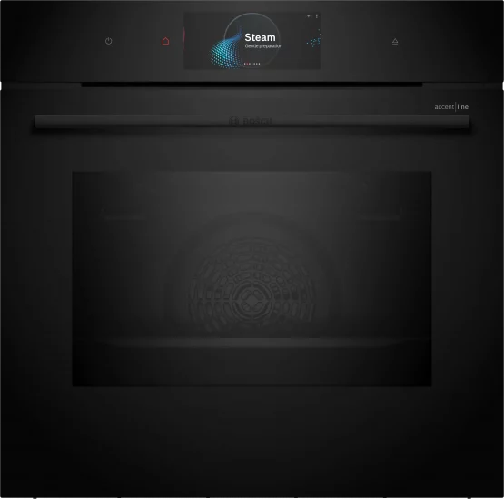 Der Bosch HSG938EB1 ist ein Premium-Dampfbackofen, der Dampfgaren, Backen und Braten auf professionelle Weise vereint. Mit seinem großzügigen 71-Liter-Garraum eignet er sich perfekt für Familien und anspruchsvolle Hobbyköche. Die integrierte Dampfunterstützung „SteamPlus“ ermöglicht schonendes Garen bei Temperaturen bis 120 °C – ideal für Gemüse, Fisch oder Fleisch. Insgesamt stehen rund 24 Heiz- und Kombinationsarten zur Verfügung, darunter 4D-Heißluft, Air Fry, Sous-Vide, Pizza-Stufe und Regenerieren. Über das farbige TFT-Touchdisplay und den innovativen Digital-Control-Ring lassen sich Programme, Temperaturen und Zeiten intuitiv einstellen. Für zusätzlichen Komfort sorgen Funktionen wie EcoClean Direct und Hydrolyse, die die Reinigung des Garraums erleichtern. Mit Home Connect lässt sich der Backofen per Smartphone oder Sprachsteuerung bedienen, während das edle schwarze Design und hochwertige Materialien für eine moderne, stilvolle Optik sorgen. Der HSG938EB1 steht für präzises Kochen, Effizienz und smarte Kücheninnovation.